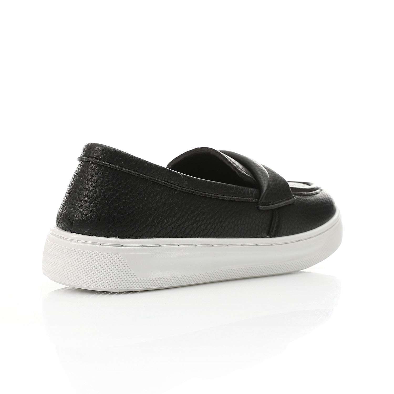 Silhouette: The shoe has the classic, low-profile upper of a loafer or moccasin, but it is paired with a thicker, flat white cupsole (similar to a sneaker), which gives it a contemporary and casual look.