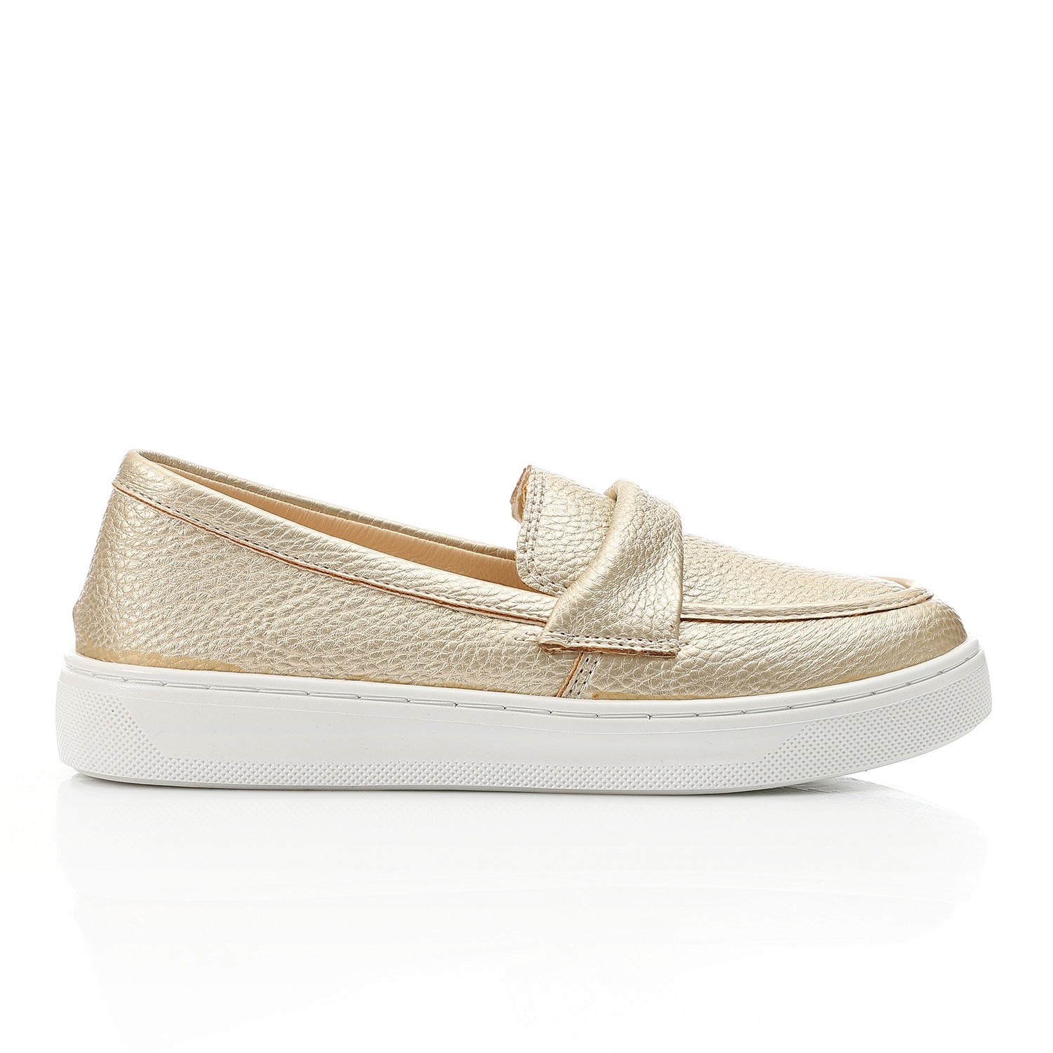 Silhouette: The shoe has the classic, low-profile upper of a loafer or moccasin, but it is paired with a thicker, flat white cupsole (similar to a sneaker), which gives it a contemporary and casual look.