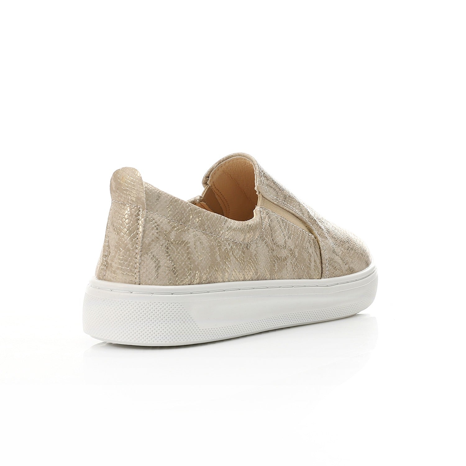 Silhouette: The shoe is a classic laceless slip-on sneaker with a low-cut profile. It uses elastic gores (small stretchy panels) hidden on the sides of the vamp to ensure easy entry and a snug fit.